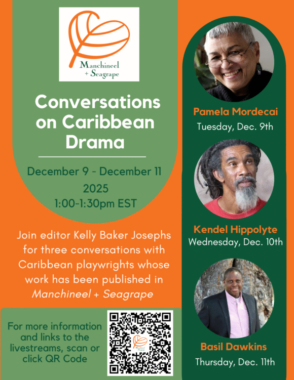 Join Kelly Baker Josephs for the following three conversations with Caribbean playwrights whose work has been published in Manchineel + Seagrape: